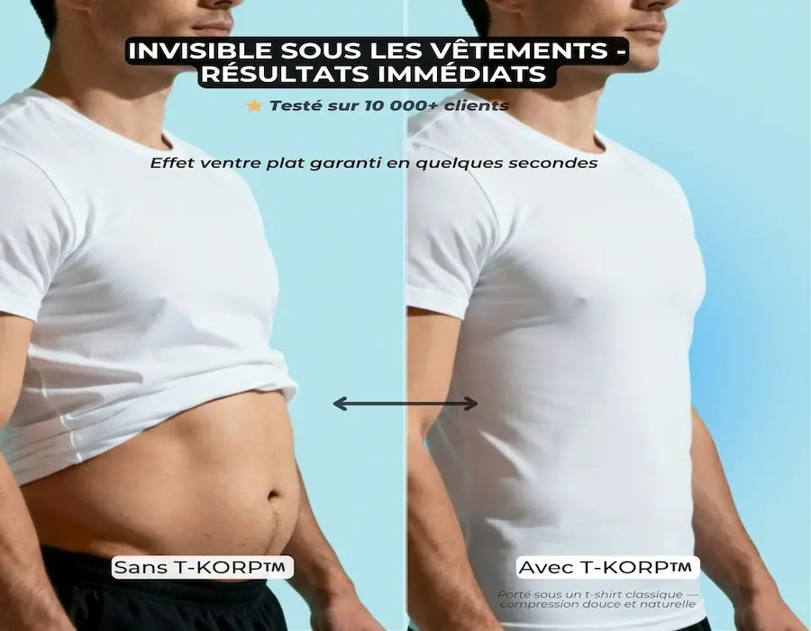 Le T-Korp™ ne fait pas "fondre" la graisse : il sculpte visuellement la silhouette grâce à une compression intelligente qui affine la taille et redresse la posture.